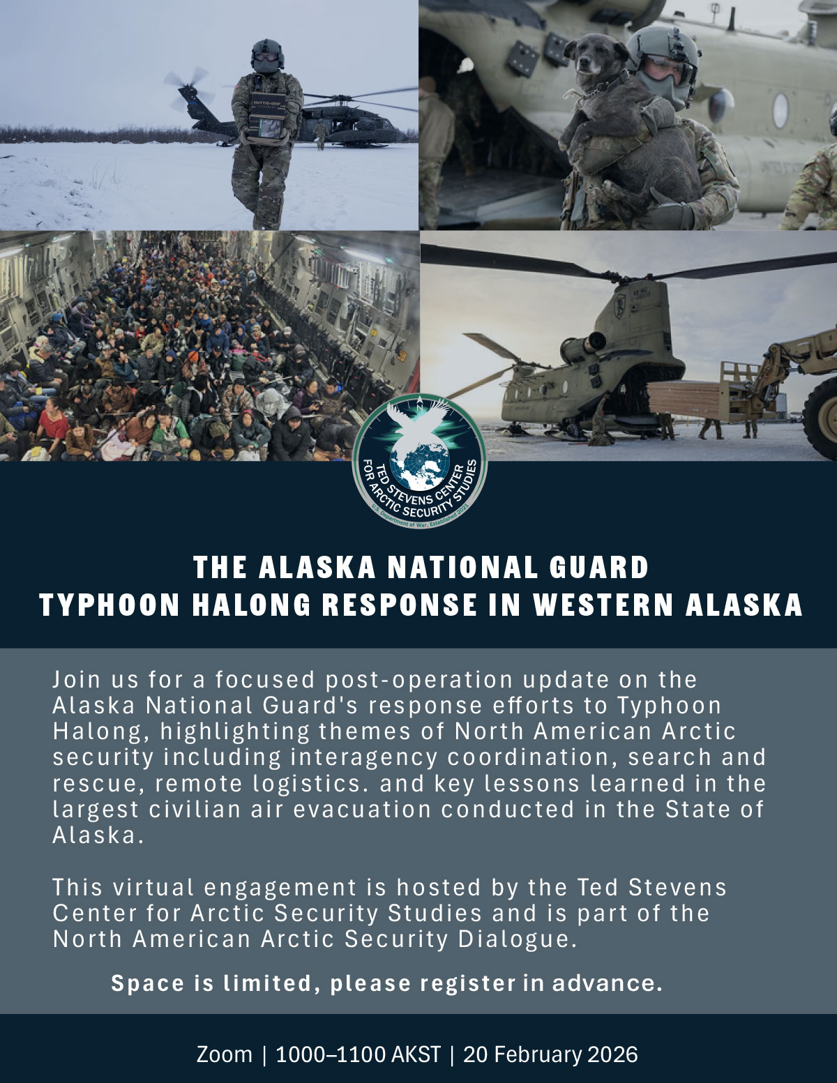 On behalf of the Ted Stevens Center for Arctic Security Studies, we would like to invite you and members of your organization to join a webinar featuring a post-operation update from the Alaska National Guard – Joint Staff on its response to Typhoon Halong.