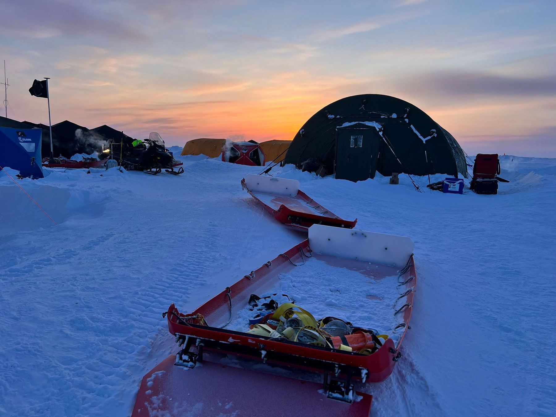 Operating directly on the sea ice introduces a set of challenges that cannot be replicated elsewhere. Environmental conditions during this year’s camp highlighted the severity of the Arctic climate. Overnight temperatures dropped to -21°F, with wind chills ranging between -45°F and -50°F. In such conditions, even brief exposure requires careful preparation and strict adherence to cold-weather protocols. For personnel working in field parties—often far from immediate shelter—the risks are amplified, reinforcing the importance of training, equipment, and discipline in extreme cold.